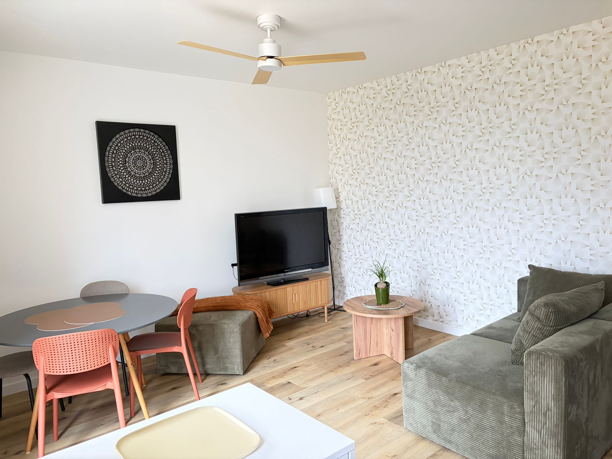 Le parti pris décoratif repose sur une palette de tons sobres et de motifs discrets, permettant à chacun de se projeter aisément dans les espaces. Ce choix assure une base intemporelle et élégante, idéale pour un usage locatif durable.
